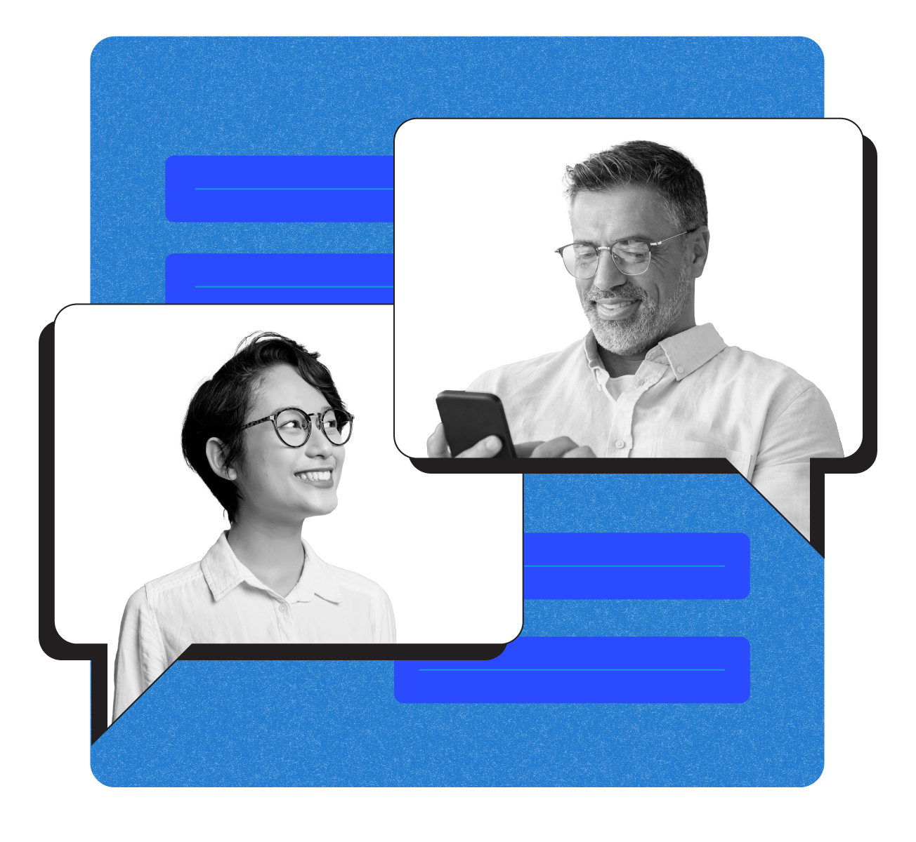 Illustration of chat bubbles and icons representing client communication in accounting practice management software.