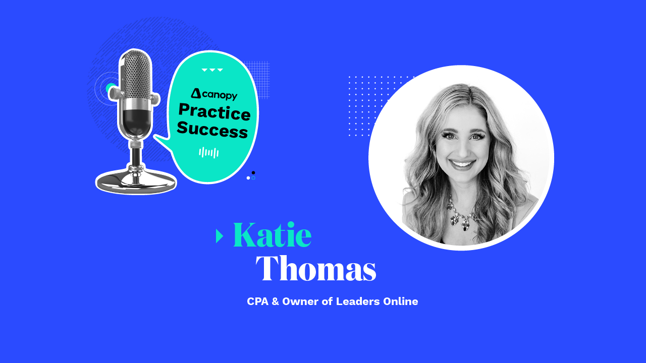 In this episode of Canopy’s Practice Success Podcast, Katie Thomas, a CPA turned marketing expert, shares her unique journey from working at a Big Four accounting firm to establishing her own marketing agency. She discusses the specific challenges accountants face in marketing, such as the importance of trust, differentiation, and targeted branding. Katie also provides practical advice on managing a brand, the significance of a solid referral strategy, and how to balance short-term wins with long-term brand building. The conversation finishes with a discussion on the ROI for marketing efforts and how firms can effectively leverage social media and other tools to attract the right clients and talent.